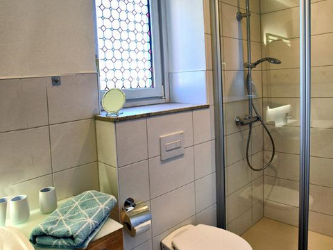 Bathroom with shower + toilet, small bathroom with toilet on the upper floor