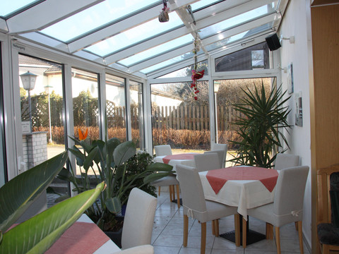 Jocketa is a small rural town in the municipality of Pöhl. Our pension is in the center of town in a quiet location, a lovingly designed guest garden with a large, covered seating area. There you can have a barbecue in the evening, or end the day with a bottle of wine. The proximity to the Vogtland Sea, the Pöhl dam, with a newly created children's adventure playground, a climbing forest and the possibility of a steamer trip make our house attractive. Children and pets are welcome. Since we offer a handicapped-accessible double room, we are well prepared for guests with a handicap. We strive to fulfill special requests. Whether our guests want to see the largest brick bridge in the world - the Göltzschtalbrücke - or its little sister - the Elstertalbrücke - they are nearby. Parking at the house. The rooms with balcony have a view of the garden and invite you to enjoy the afternoon and evening sun. Fee for dog on request, as it depends on the size.
