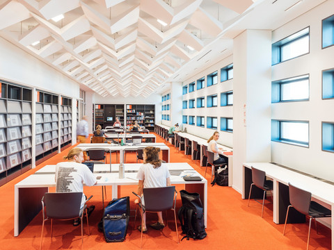 La biblioteca centrale della città si trova intorno alla sala concerti. Unisce conoscenza, istruzione e tempo libero in un paesaggio bibliotecario aperto e contemporaneo e caratterizza il carattere invitante dell'edificio. Grandi finestre e sale luminose creano un'atmosfera piacevole nel centro della città vecchia.