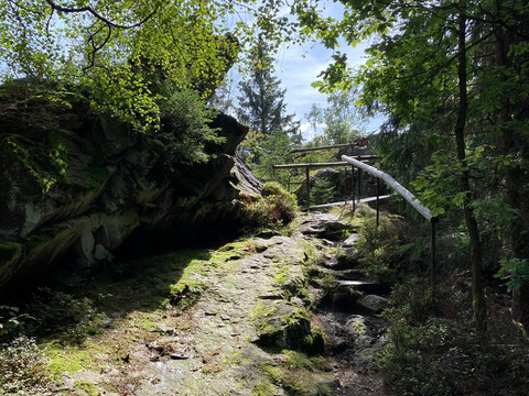 Il Felsenweg 1 ti accompagna in un percorso da roccia a roccia intorno alla località di soggiorno riconosciuta a livello statale di Grünbach. Che sia il piccolo Affenstein, l'Elsenfelsen, il Rinnelstein, il Genesenstein o il Wendelstein - ogni roccia è una piccola scoperta sul romantico e mistico percorso. Ognuna ha il suo fascino particolare o può raccontare di particolarità geologiche, leggende legate alla pietra o di storia culturale. Al Wendelstein si incontra anche la formazione rocciosa "Löwenkopf", che è diventata il simbolo dei sentieri rocciosi. Geologicamente significativo è la cosiddetta "piegatura capovolta" al Rehhübelfelsen. Quali forze premevano una volta dall'interno della terra?