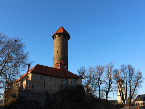 Mentre del castello medievale nel sito della tenuta nobiliare nella parte “superiore” resta poco, nella parte “inferiore” della città si trova un castello a due piani del tardo Rinascimento. Caratteristici sono la struttura a graticcio e la torre a scala con ottagono e cupola contorta. Concerti e feste annuali al castello sono molto popolari.