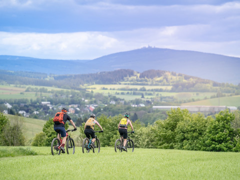 17 km 365 m / Il Pöhlberg è finito. Il percorso prosegue ora attraverso Cunersdorf, Sehmatal e Crottendorf fino a Scheibenberg. Il sentiero delle radici poco prima della fine della tappa è particolarmente impegnativo!